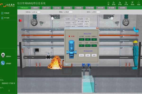 山東盛和電子有限公司城鎮(zhèn)綜合管廊地理信息管理平臺的基礎(chǔ)數(shù)據(jù)庫和服務(wù)器集成在監(jiān)控與報警統(tǒng)一管理信息平臺內(nèi),并在平臺上提供人機交互界面。系統(tǒng)預(yù)留與市政基礎(chǔ)設(shè)施地理信息系統(tǒng)聯(lián)通的通信接口。